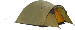 Den store sideåbning, som kan rulles mere eller mindre til siden og fikseres, giver gennem den gedigne YKK® -lynlås med automatisk lås adgang til den rummelige apsis, hvori støvler, rygsække og andet kan opbevares i tørvejr, ligesom man – med stor forsigtighed – kan lave mad i teltåbningen. Og har man en ekstra overliggerdag pga. dårligt vejr kan inderteltet lynhurtigt løsnes og trækkes tilbage, så man har godt med plads under oversejlet. Alle spidsbelastningspunkterne omkring pløkfæsterne er naturligvis ekstra forstærket. De afstivede og regulerbare ventilskakter i begge ender justerer luftgennemstrømningen og det bagvedliggende myggenet ved såvel indgangsdør til inderteltet som ved ventilskakterne holder alt krybet ude.