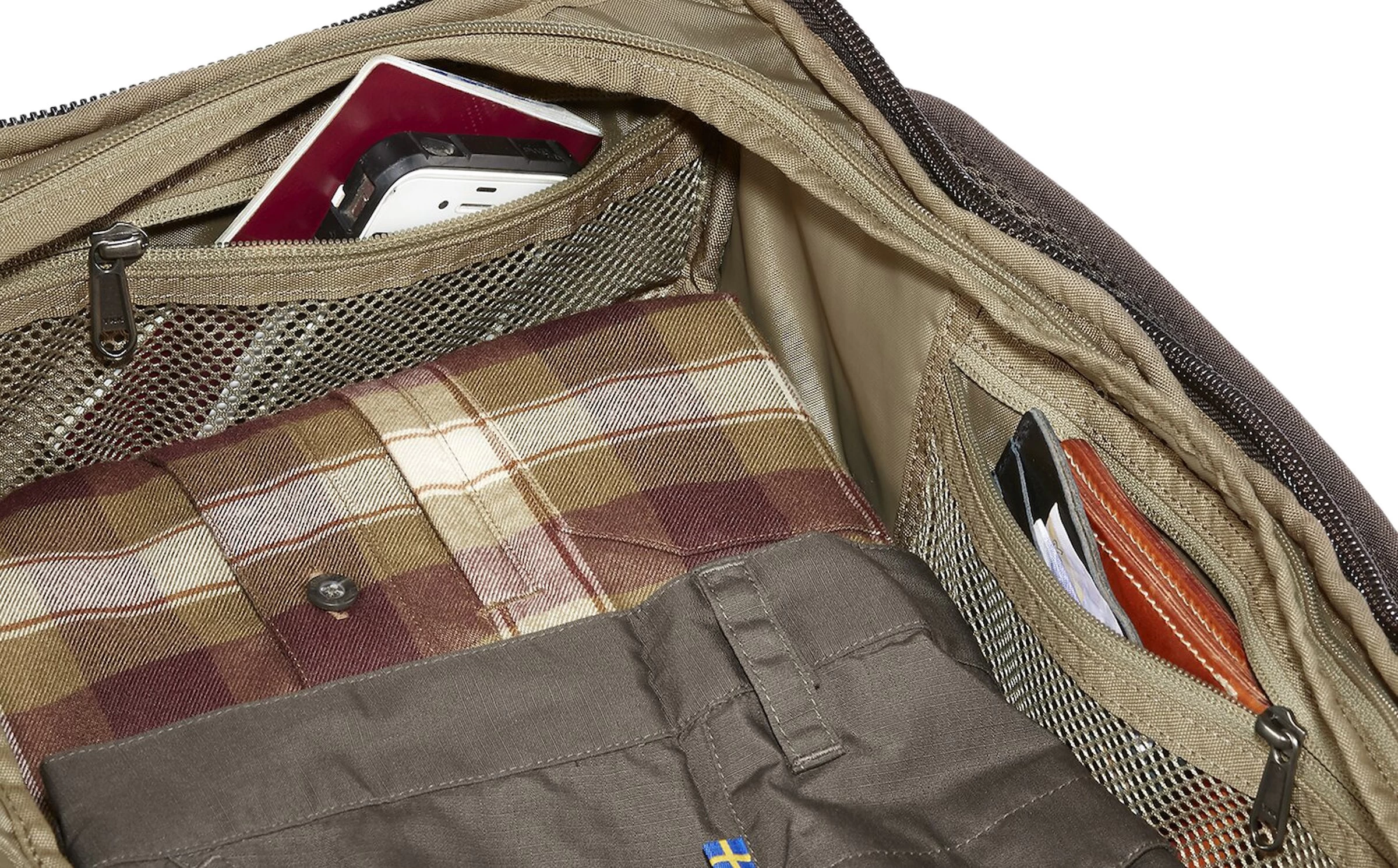 Fjällräven Splitpack er nemlig udstyret med ventilerede og polstrede skulderremme, så den kan bæres på ryggen. Skulderremmene kan naturligvis justeres i længden og fikseres med en knaplukning, når de er trukket helt ind til tasken, så de under transporten ikke sidder i vejen.