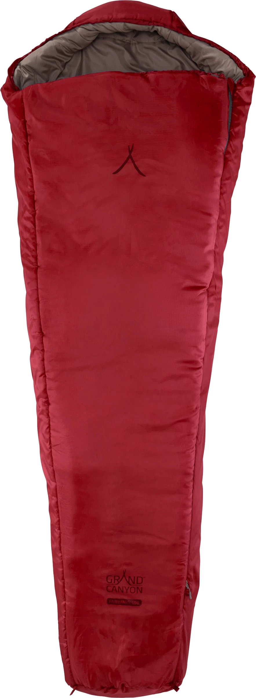 Grand Canyon Fairbanks 205 Mummy er en rigtig allrounder og med sin helt vandtætte underside et rigtig godt bud på en fornuftig sovepose til de kølige nætter i shelteret eller til anden overnatning i det fri.