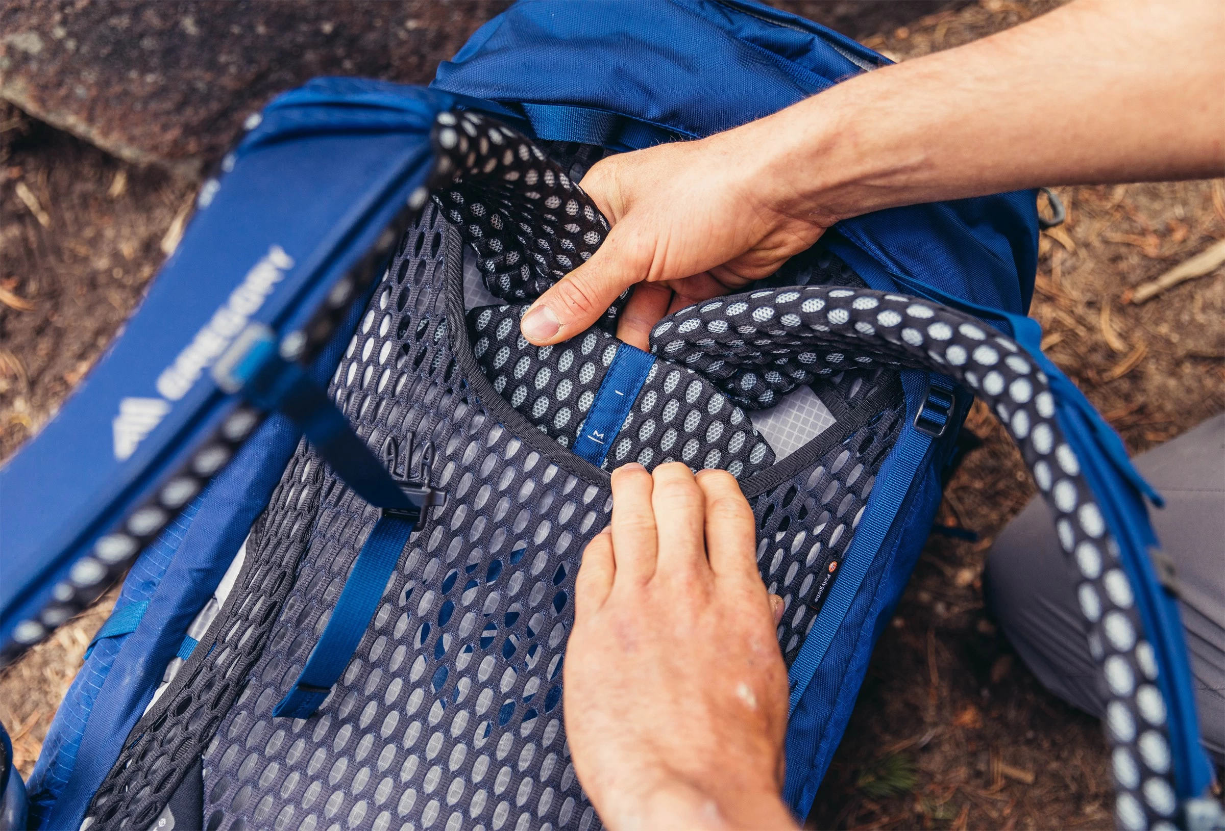 Både de perfekt formede skulderremme og hoftebæltet er skåret med særlige FocusForm™ -komfortzoner, som Gregory har brugt meget tid på at udvikle. Denne løsning, hvor der nøje er skelet til kroppens anatomi, sikrer maksimal aflastning på de mest udsatte områder, uden at skulle bruge unødig megen skumpolstring på spidsbelastningspunkterne. Både hoftebælte og skulderremme er foret med formpresset LifeSpan™ -termoskum med forskellige densiteter (afhængigt af placering og belastningsgrad) og med ventilerende Die Cut-udstansninger, som holder vægten nede og bidrager til øget smidighed og ventilation. Og dette termoskum forener den sublime bærekomfort med super lav vægt bedre end noget andet vægtorienteret polstringsmateriale!