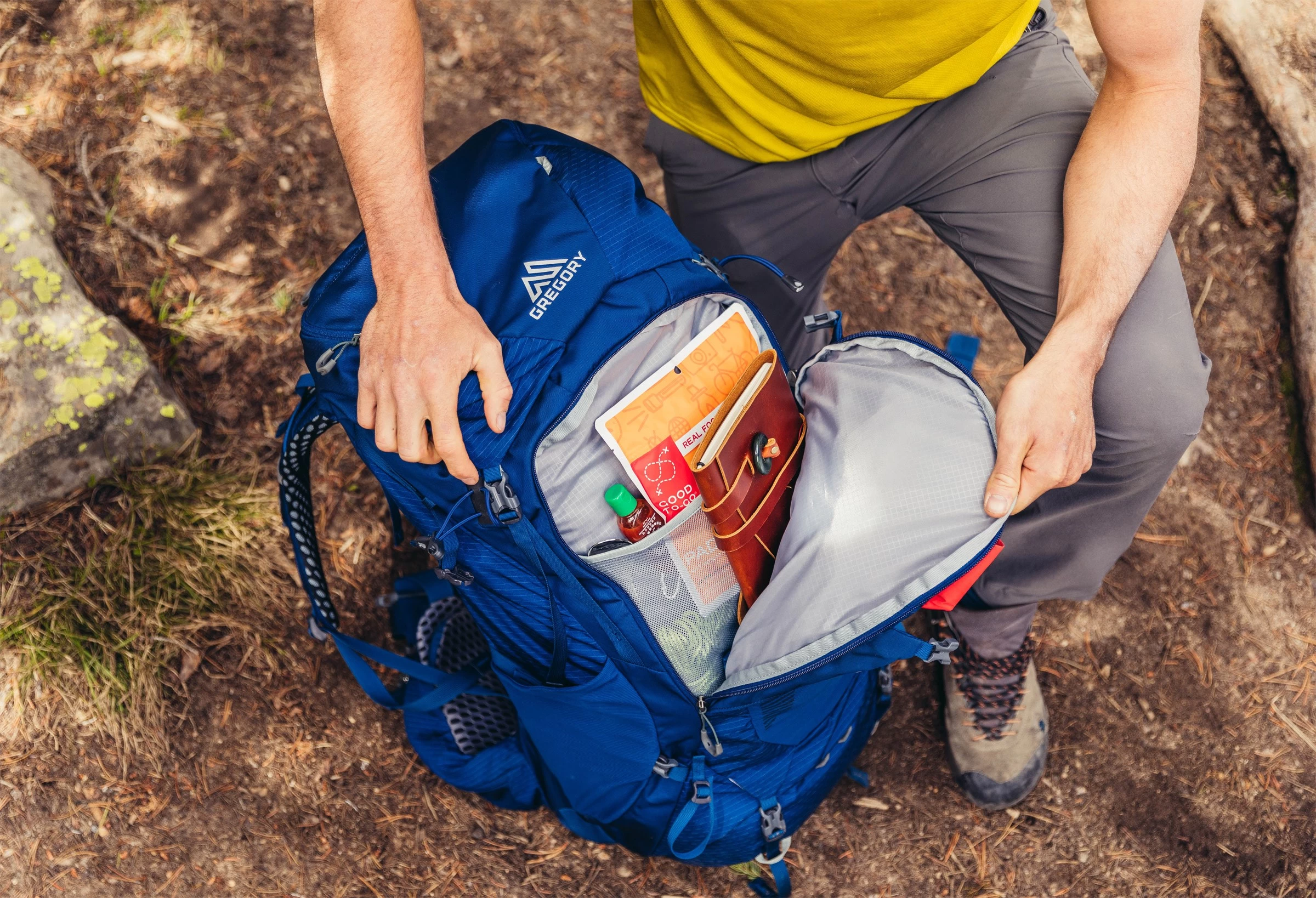 Adgangen til det medbragte udstyr er gjort lettest mulig, da selve det store hovedrum enten entreres gennem toppen, gennem lynlåsen i bunden eller gennem den lange, U-formede lynlås på siden, som gør det nemt og bekvemt at komme til sine stumper. Og der er selvfølgelig mulighed for opdeling af selve hovedrummet, hvis man fx ønsker at have sovepose mv. liggende separat nederst i rygsækken. I selve det store hovedrum over selve soveposerummet nederst placeres de tungere genstande, som man typisk putter i rygsækken om morgenen og først får brug for igen sidst på dagen som fx. liggeunderlag, telt og noget ekstra tøj.