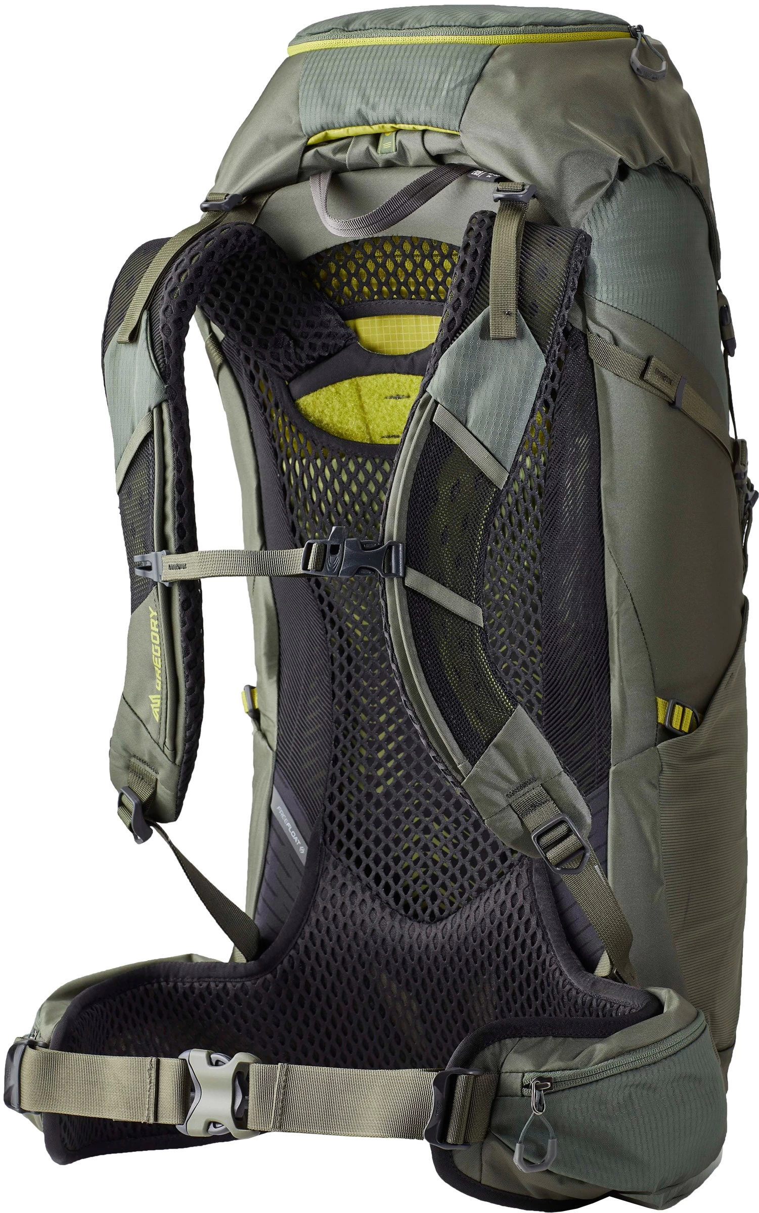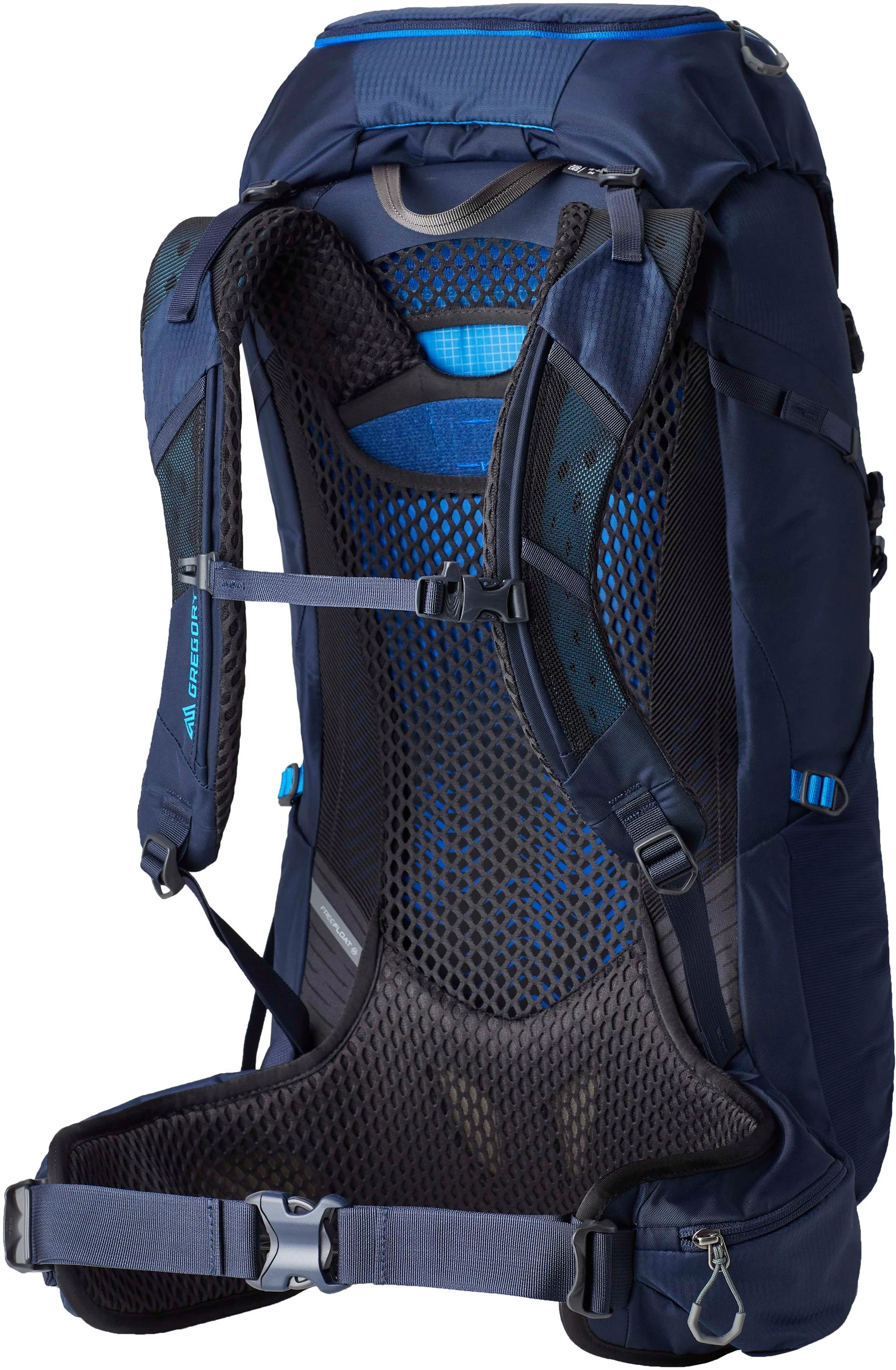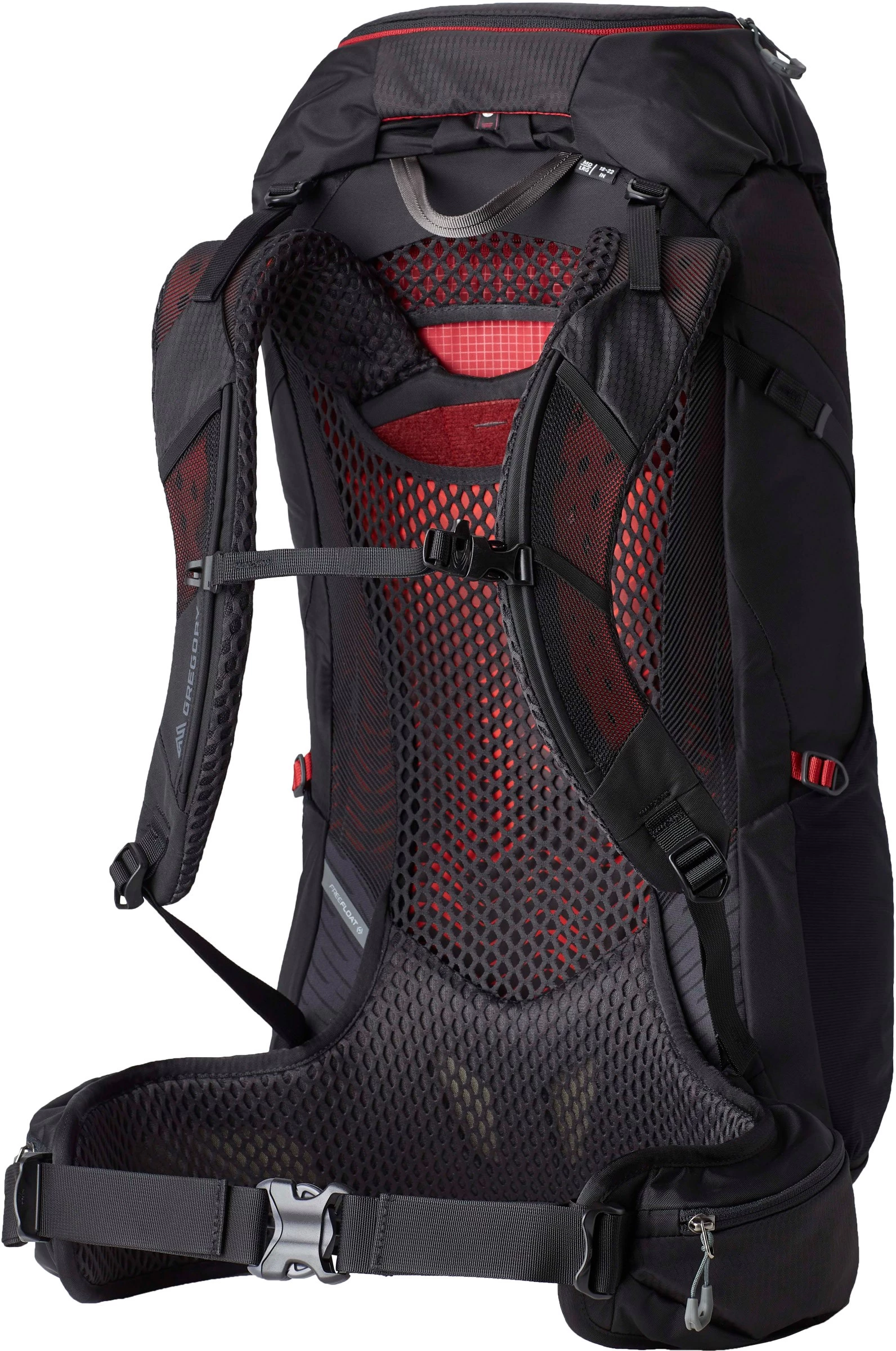 Gregory Zulu 40 M/L er udstyret med en rummelig stretch-lomme på hver side og en stor stiklomme på fronten til fx regnjakken, klatreselen eller det våde håndklæde. Sidelommerne er store nok til at sluge hver deres 1 liters drikkeflaske, hvis man da ikke lige anvender et drikkesystem, som rygsækken selvfølgelig også er forberedt til. Derudover kan der på fronten af sækken monteres trekkingstave, isøkse eller skovl ved hjælp af de smarte, integrerede anordninger og rygsækkens eventuelle overskudsvolumen komprimeres effektivt ved hjælp af de to remme på hver side og en under låget, som tilsammen desuden sikrer, at vægten kommer ordentligt ind til ryggen.