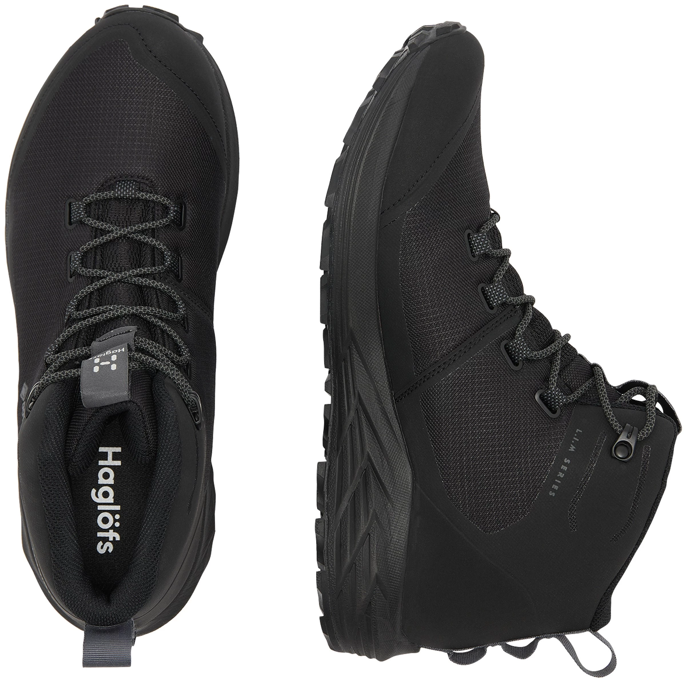 Haglöfs L.I.M. FH GTX® Mid er en fantastisk let og meget alsidig halvstøvle, som kan bruges som let vandrestøvle såvel som til forskellige højpulsaktiviteter i det rå og til tider ufremkommelige terræn. Den vandtætte overdel med Gore-Tex® -membran er elegant sammensyet/-svejset på en sådan måde, at man undgår irritationer omkring foden på de lange ture, og den ekstra fleksible og velventilerende konstruktion af overdelen og det meget letløbende Easy-Fix™ snøresystem giver en særlig fornemmelse af, at støvlen nærmest smyger sig om foden. På de mest udsatte områder er overdelen ekstra forstærket med TPU-paneler, og indvendigt er støvlen foret med en fugttransporterende mikrofiber, der sørger for det rette klima omkring foden. Indersålen er en Asics® EVA, som nøje tilpasser sig fodens aftryk og øger de stødabsorberende egenskaber.