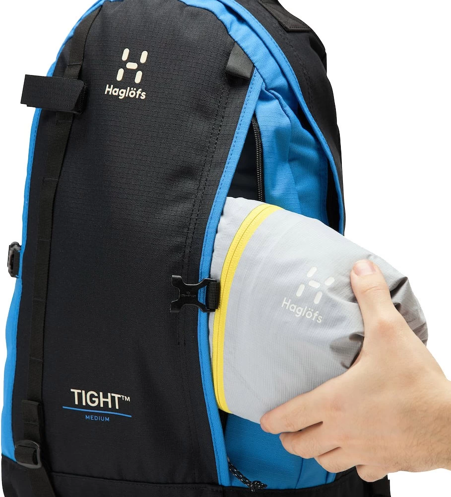 Haglöfs Tight er lavet med en forbedret åbning, der gør det muligt at åbne rygsækkens hovedrum, uden at al indholdet falder ud – en meget fin detalje! Dette hovedrum er i øvrigt lavet med en ekstra, lynlåslukket lomme til forskellige småting, og udenpå dette hovedrum er der fundet plads til endnu et lynlåslukket rum til de småting, man hurtigt skal kunne komme til.
