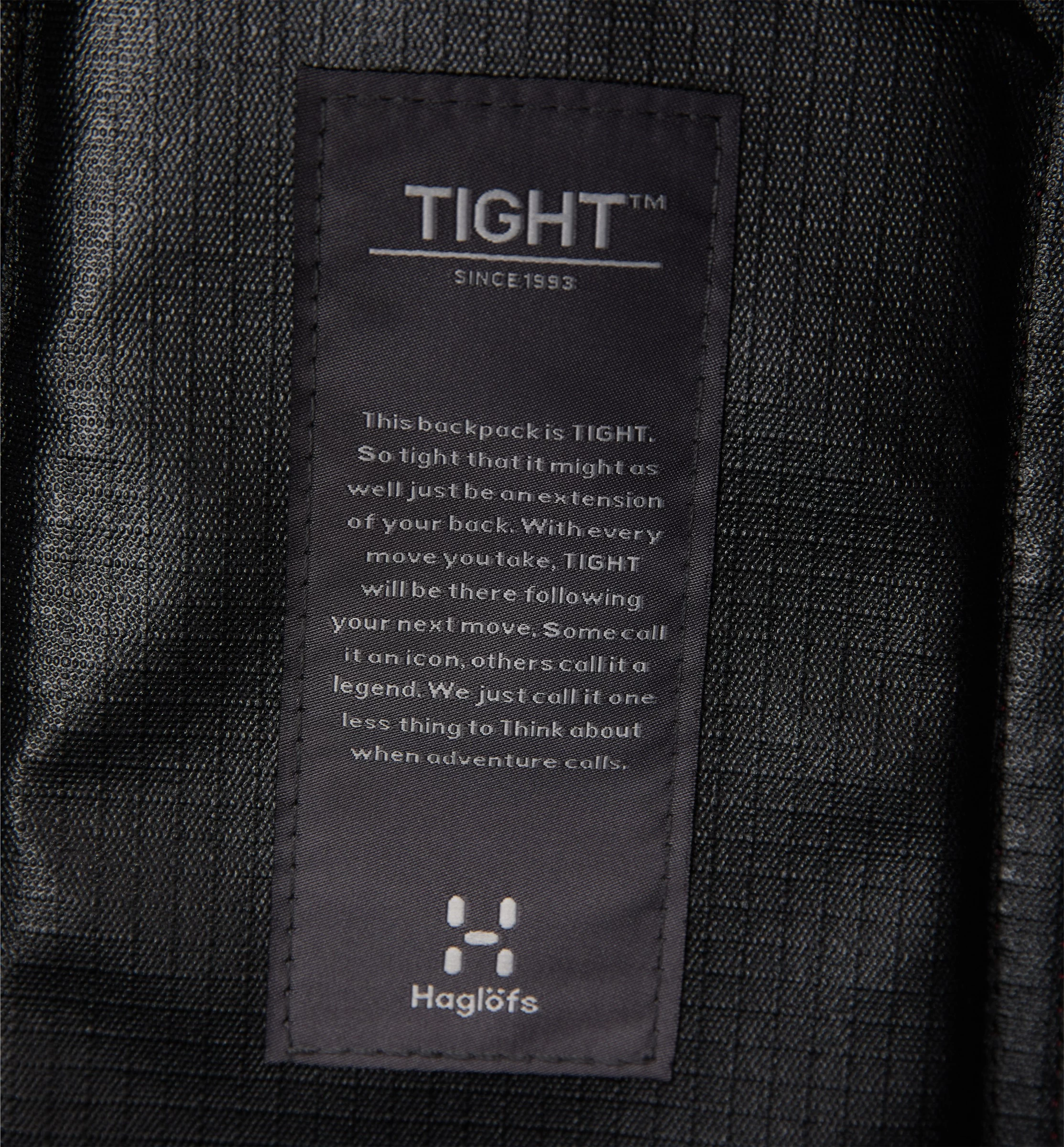 Det var faktisk denne serie, der startede hele Tight-eventyret for svenske Haglöfs. Siden fulgte de nu udgåede Tight Pro, Tight Pro SE og Tight Evo, men hele tiden har den klassiske Tight-serie kørt sideløbende og er gennem tiderne blevet forfinet, så den også i dag er én af de mest velsiddende dagtursrygsække.