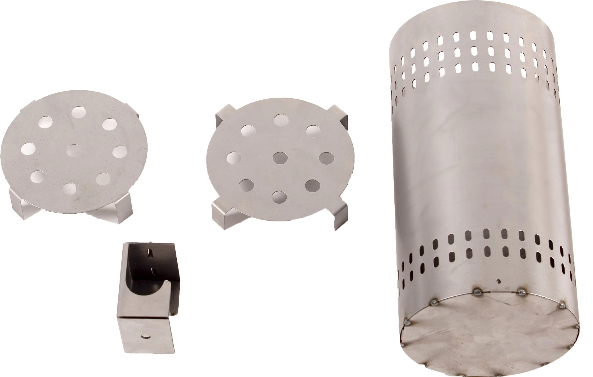 Helsport Lavvu Burner måler 35 cm. i højden, har en diameter på 18 cm. og er fremstillet af massivt og robust stål og giver en fantastisk varme i teltet. Men ikke nok med det, for anvendes den medfølgende topplade, kan ovnen bruges til madlavning, medens flammerne kan følges i de talrige ventilationshuller på siden af ovnen.