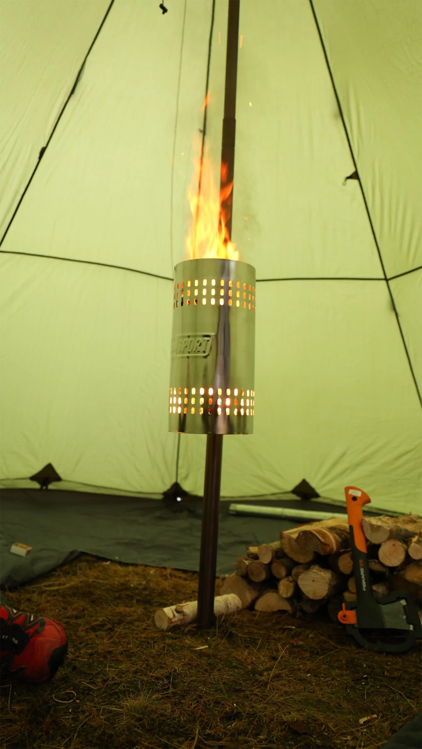 Denne smarte Lavvu Burner fra Helsport er løsningen for dig, der vil have en nem og hurtig løsning på varmende ild i din lavvu.