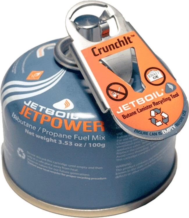 Slut med brugte gasdåser, der hober sig op derhjemme! Med dette geniale CrunchIt Recycling Tool, der blot vejer 28 gram, kan du bortskaffe de tomme gasdåser på en ordentlig og forsvarlig måde.