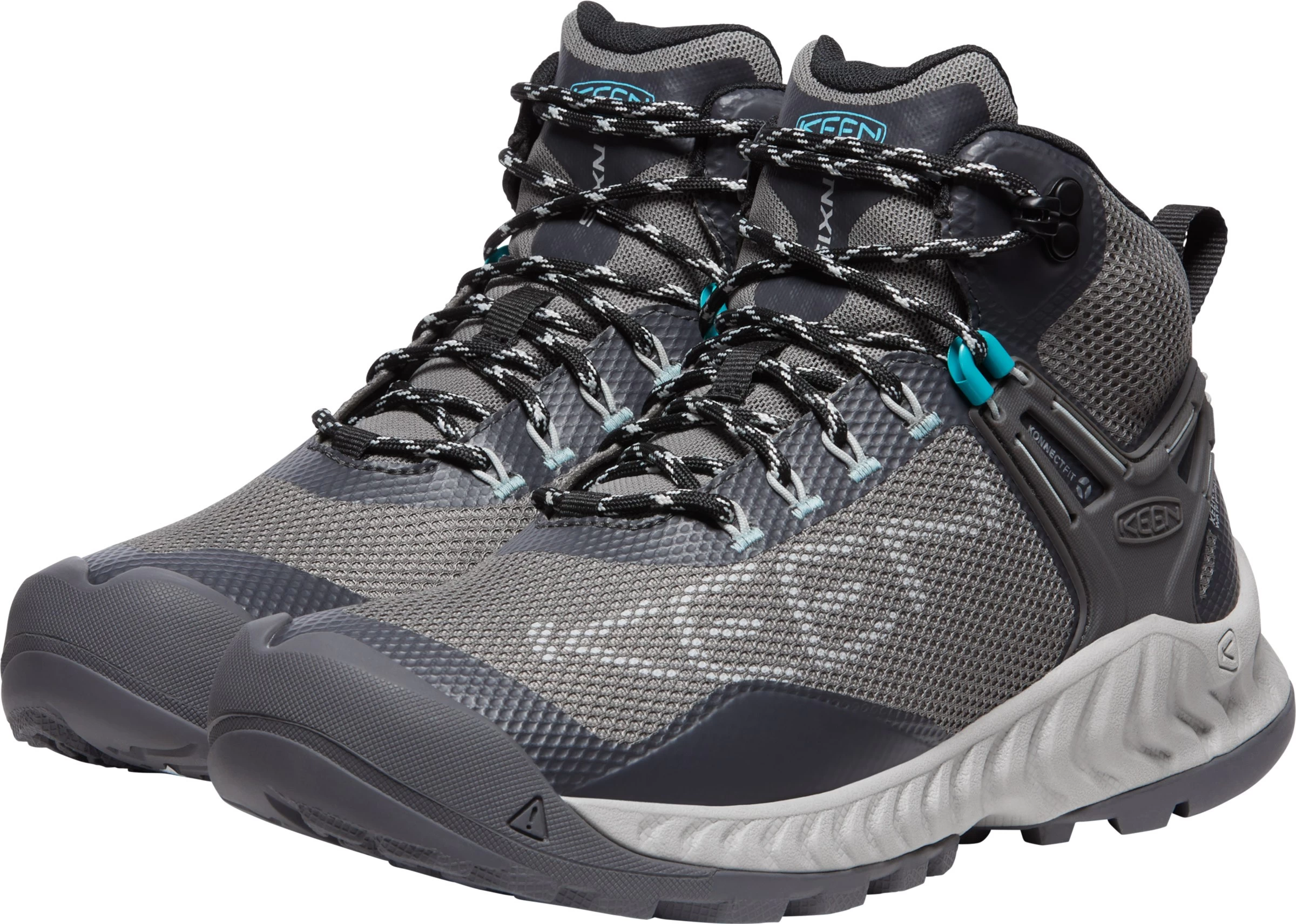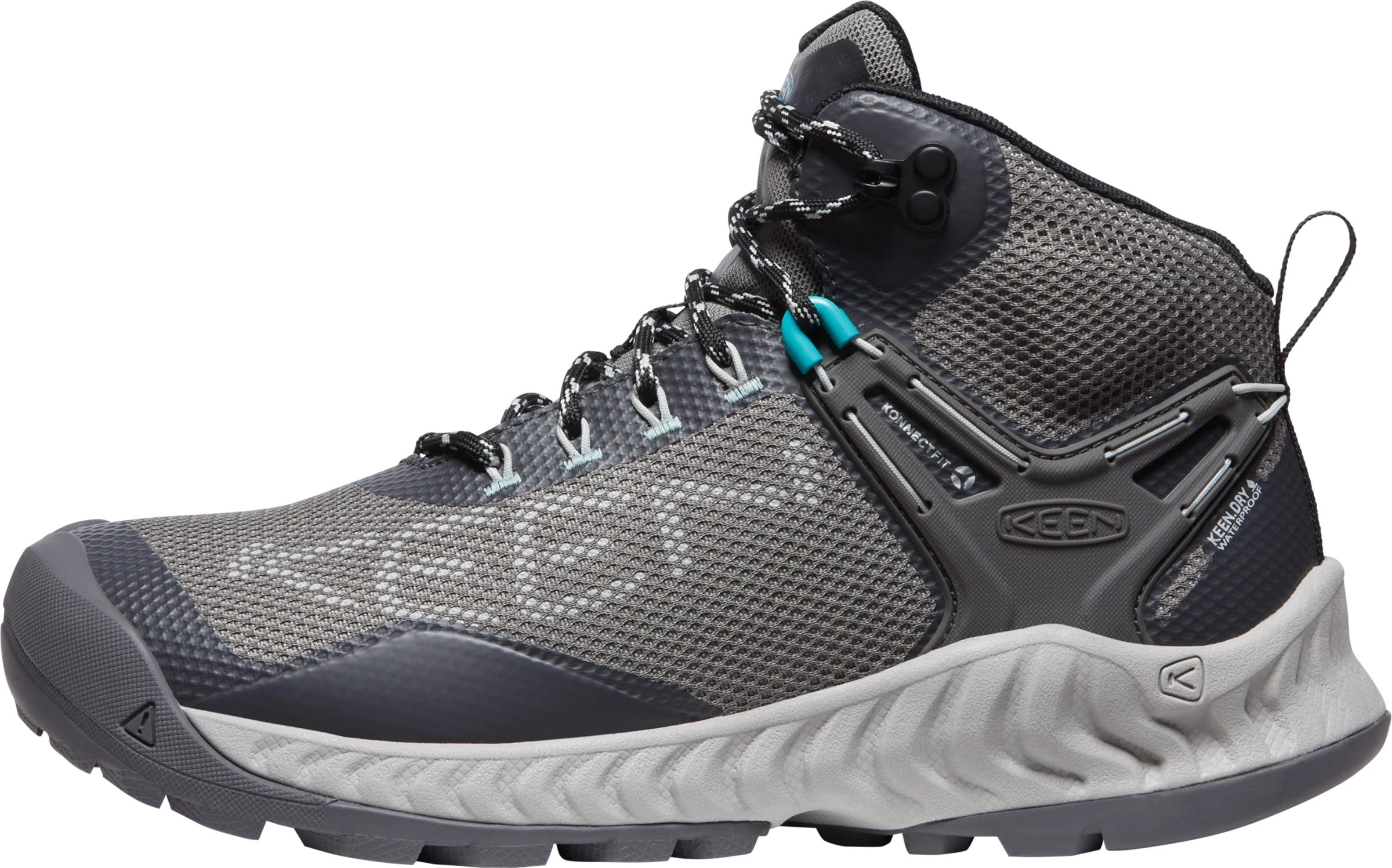 Den vandtætte og åndbare Nxis Evo Mid WP Women er fremstillet med vedligeholdelsesfri overdel af ventilerende mesh og forstærkende kunststof, og herunder er den gennemprøvede KEEN.DRY® -membran placeret for at sikre, at fødderne holdes tørre i al slags vejr. Indvendigt er støvlen foret med varmeregulerende og svedtransporterende DryMesh™, der sikrer det rette klima omkring foden, og denne foring er naturligvis antibakterielt behandlet med miljøvenlig Eco Anti-Odor™.