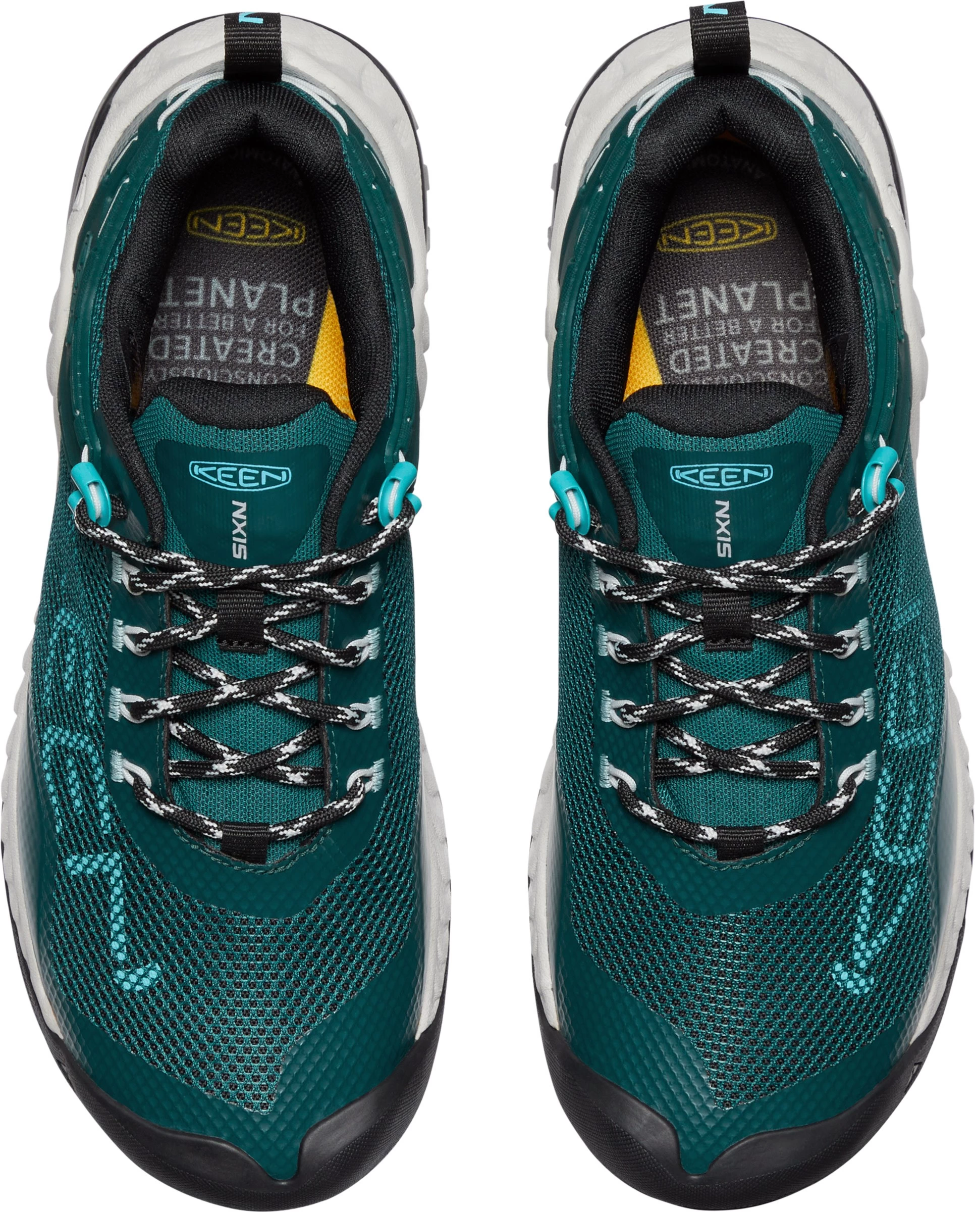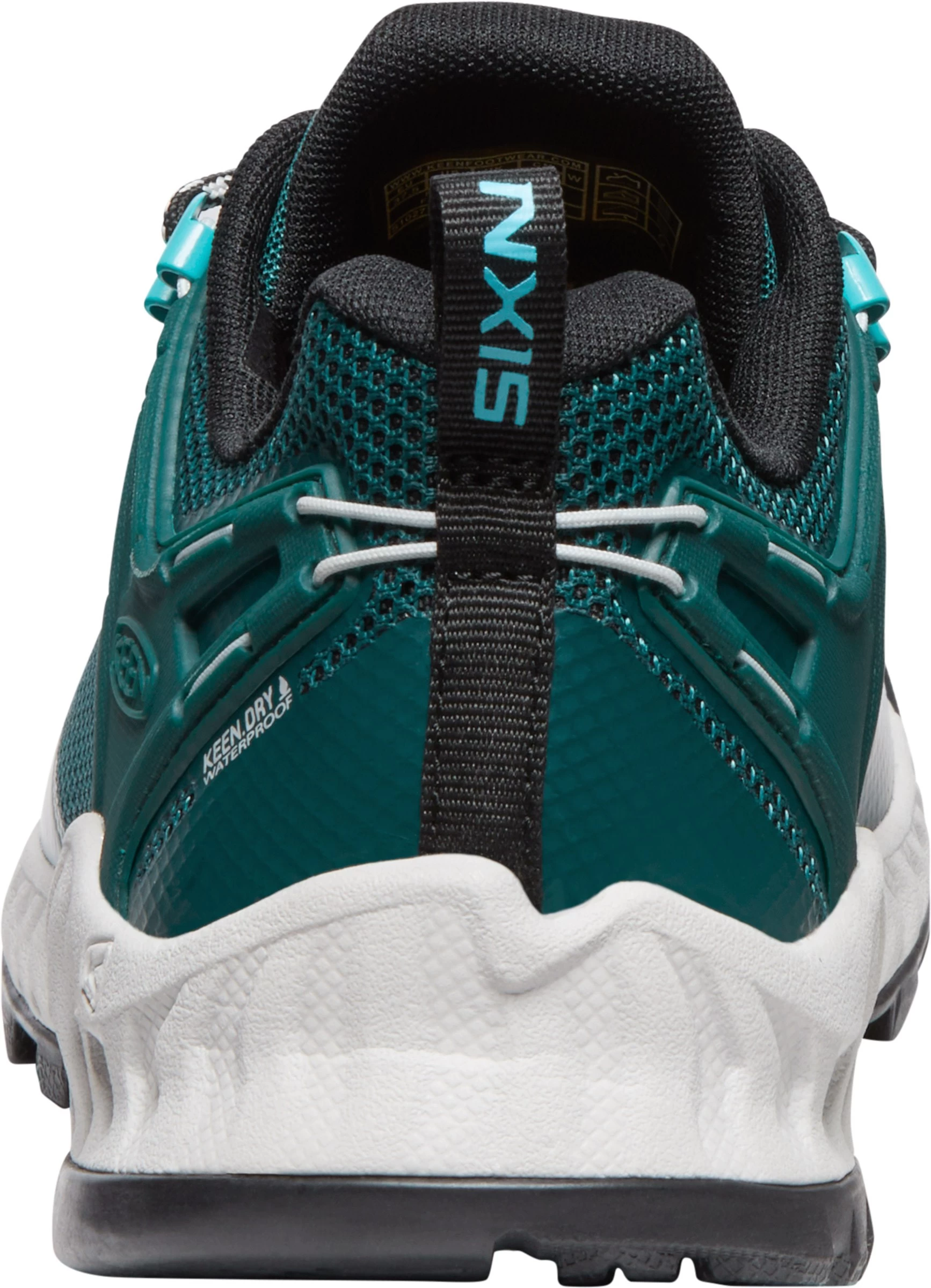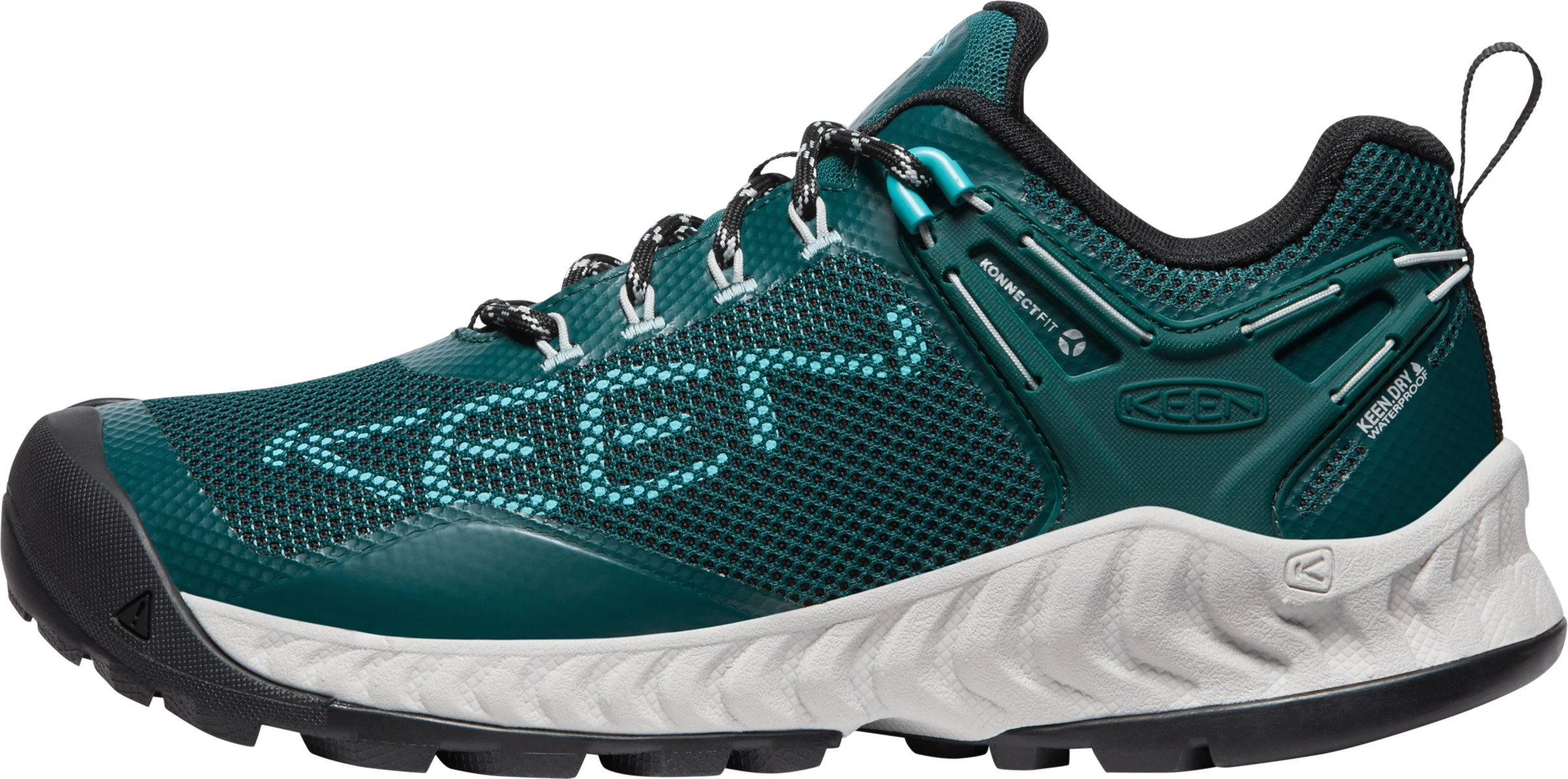 Den vandtætte og åndbare Nxis Evo WP Women er fremstillet med vedligeholdelsesfri overdel af ventilerende mesh og forstærkende kunststof, og herunder er den gennemprøvede KEEN.DRY® -membran placeret for at sikre, at fødderne holdes tørre i al slags vejr. Indvendigt er skoen foret med varmeregulerende og svedtransporterende DryMesh™, der sikrer det rette klima omkring foden, og denne foring er naturligvis antibakterielt behandlet med miljøvenlig Eco Anti-Odor™.
