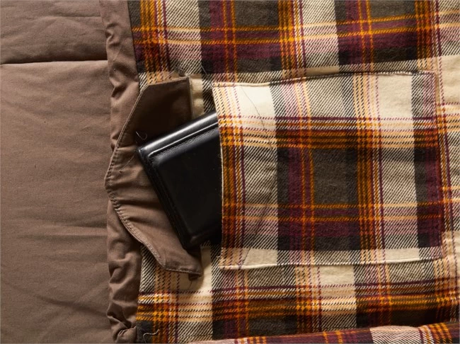 Dette skyldes både den rektangulære facon, som giver god plads i posen, men også materialevalget, som er af organisk bomuld, der på oversiden er ekstra tætvævet og slidstærkt og indvendigt lavet som en ekstrem blød og lækker flannel.
