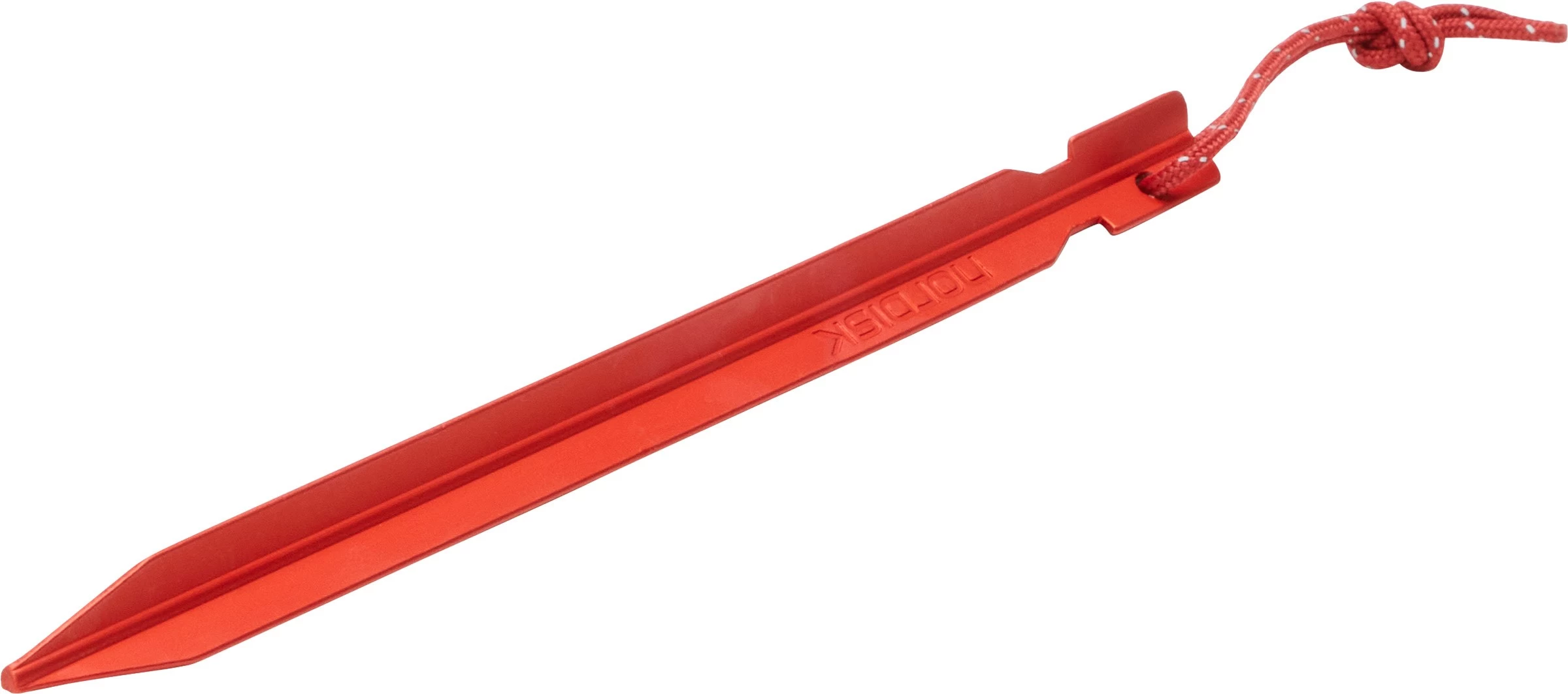 Nordisk Aluminium Y-Peg er en superstærk, Y-formet pløk, som er nem at skubbe i jorden. Den vejer 13 gram og er fremstillet af let og hårdanodiseret aluminium, som holder til det meste og som er til at få øje på.