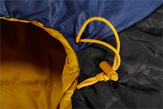Den velformede hætte er nøje udformet, så den passer som den skal, og den enhåndsjusterbare snorelukning sørger for en ordentlig sammensnøring, så hætten faktisk følger hovedets bevægelser. Hættens åbning er naturligvis skåret så tilpas lille, at unødigt varmetab undgås. Den indvendige skulderkrave og den fiberfyldte kanal langs hele åbningens kant, holder varmen nede i soveposen og forsegler mod den kolde vind.