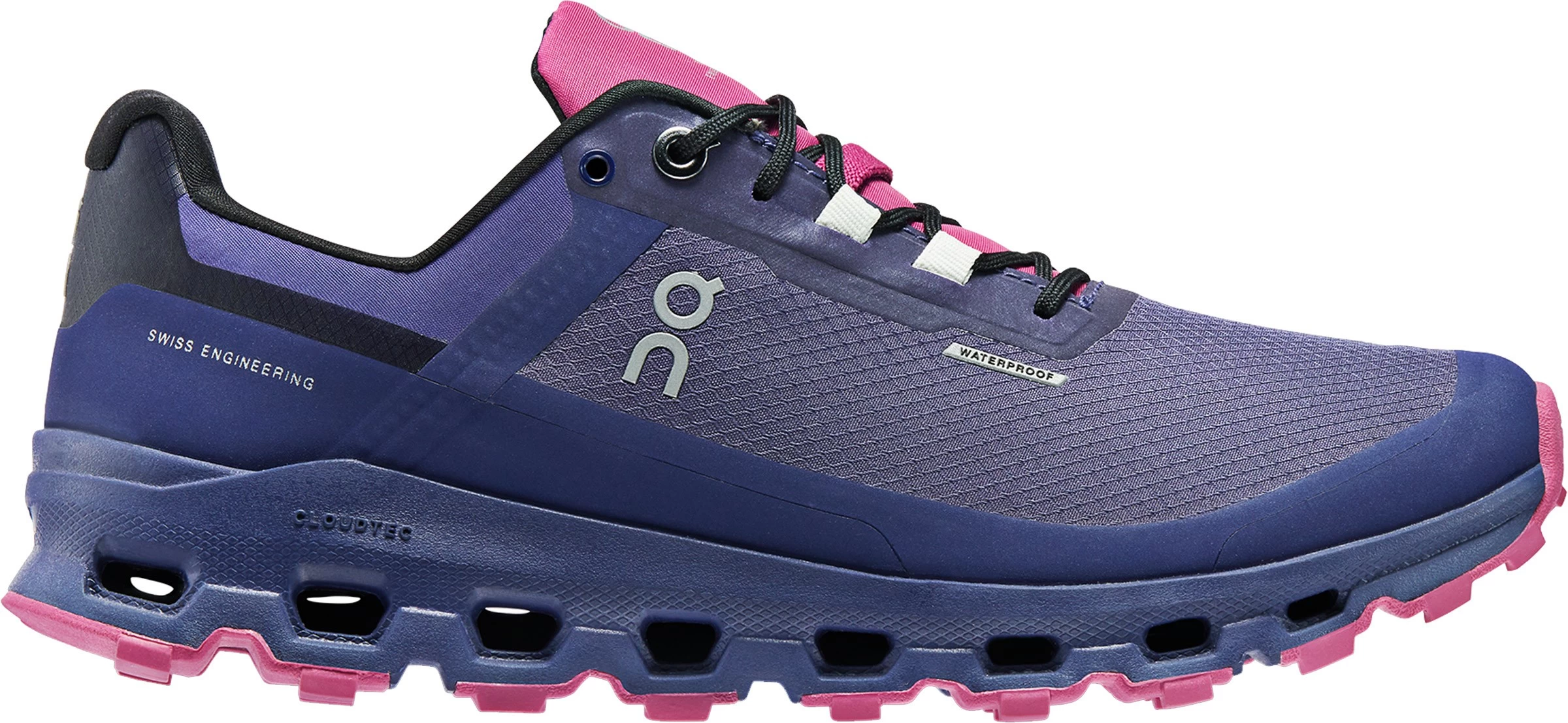 Denne vandtætte Cloudvista Waterproof Women byder på en formidabel støddæmpning og er én af Ons letteste modeller. Den er med sin ekstra kraftige mellemsål lavet med en endnu mere udtalt dæmpning end de mere traditionelle modeller fra On, for denne model er tiltænkt både løb og speed-hiking på stier og på hårdere underlag generelt.