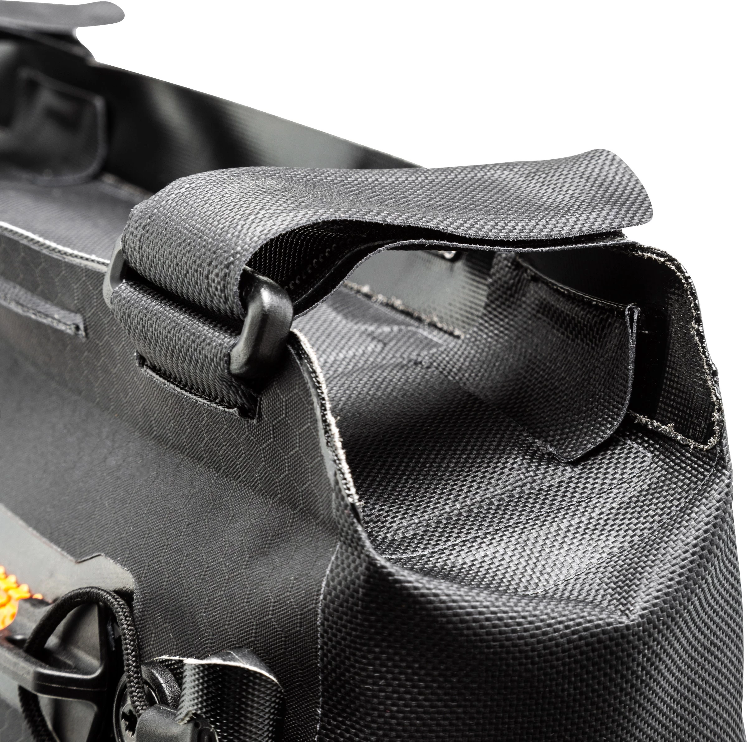 Og da både det meget slidstærke nylonmateriale og lynlåsen til indgangen er vandtæt, kan du endda krydse floder på din bikepacking-tur, uden at skulle bekymre dig om at holde bagagen tør.