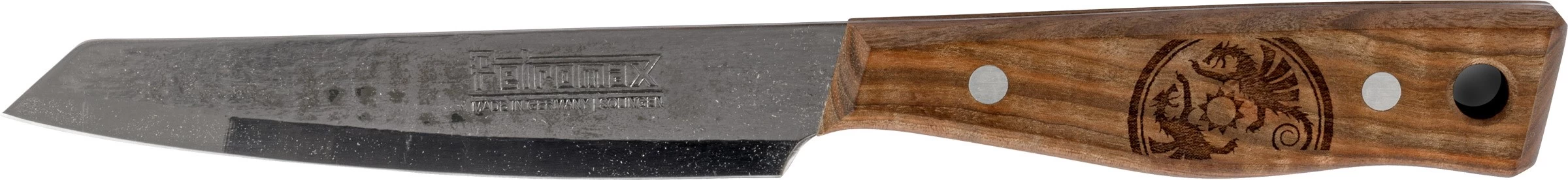 Hos Petromax ved de, hvad udendørskokke elsker: Et særligt look kombineret med de høje krav, der stilles til madlavning over bål. Så med stor ekspertise har Petromax’ produktudviklere designet og skabt en kniv, der er særlig holdbar. Verden over er Solingen kendt for både smedes og sliberes håndværk. Sværd, knive og sakse er blevet produceret i Klingernes By siden det 13. århundrede. Lang tradition og dygtigt håndværk er kvalitetsstempel for Solingen-knivene, som skiller sig ud med deres høje skæreevne og udtalte styrke.