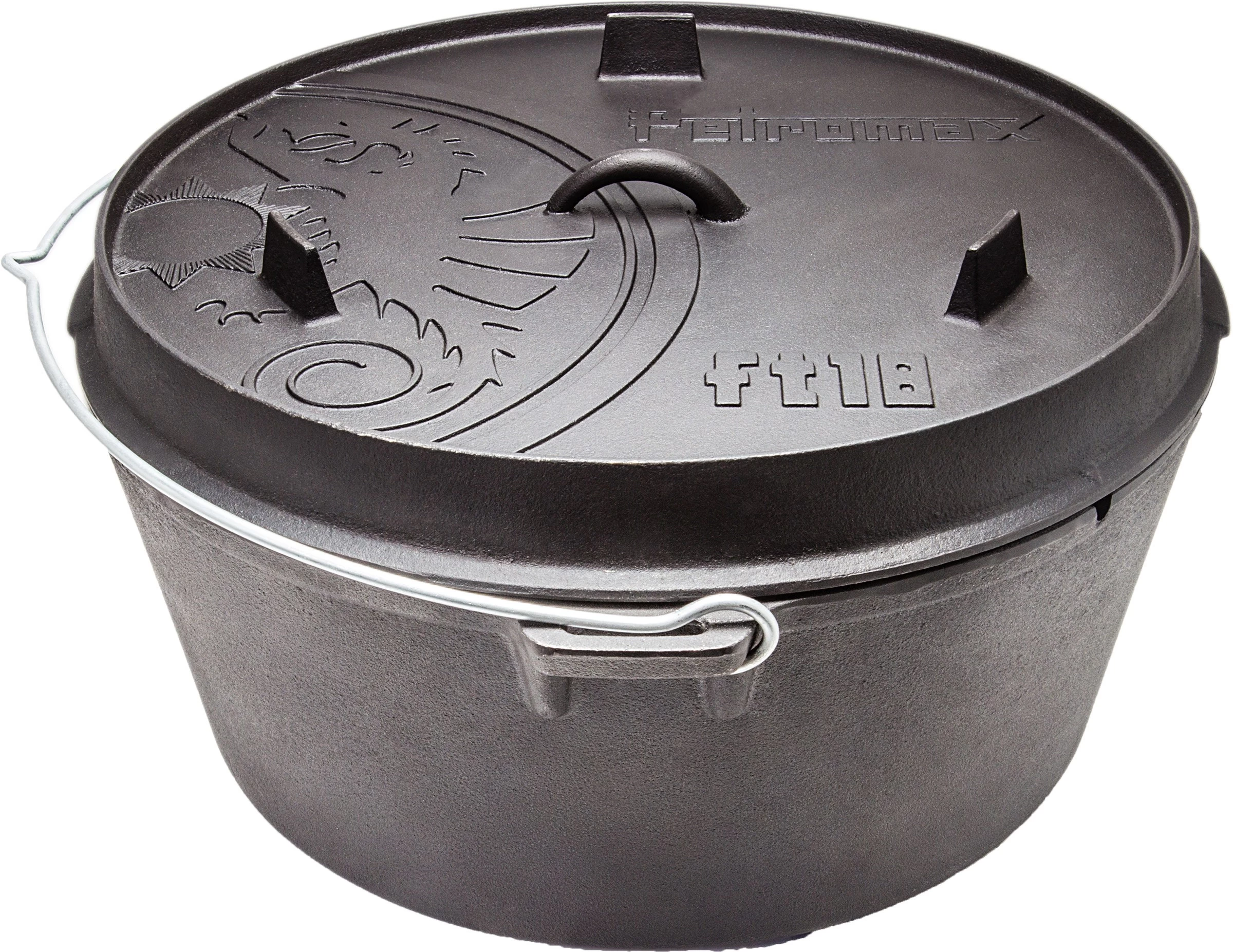 Den originale Petromax Dutch Oven er ideel til madlavning og bagning i det fri eller i ovnen derhjemme. Støbejernsgryder har eksisteret siden det 18. århundrede, og selv på det tidspunkt blev de unikke egenskaber ved støbejernet i høj grad værdsat. Med de forskellige ‘dutch ovens’ tager Petromax traditionen op og tilføjer og en række raffinerede detaljer.