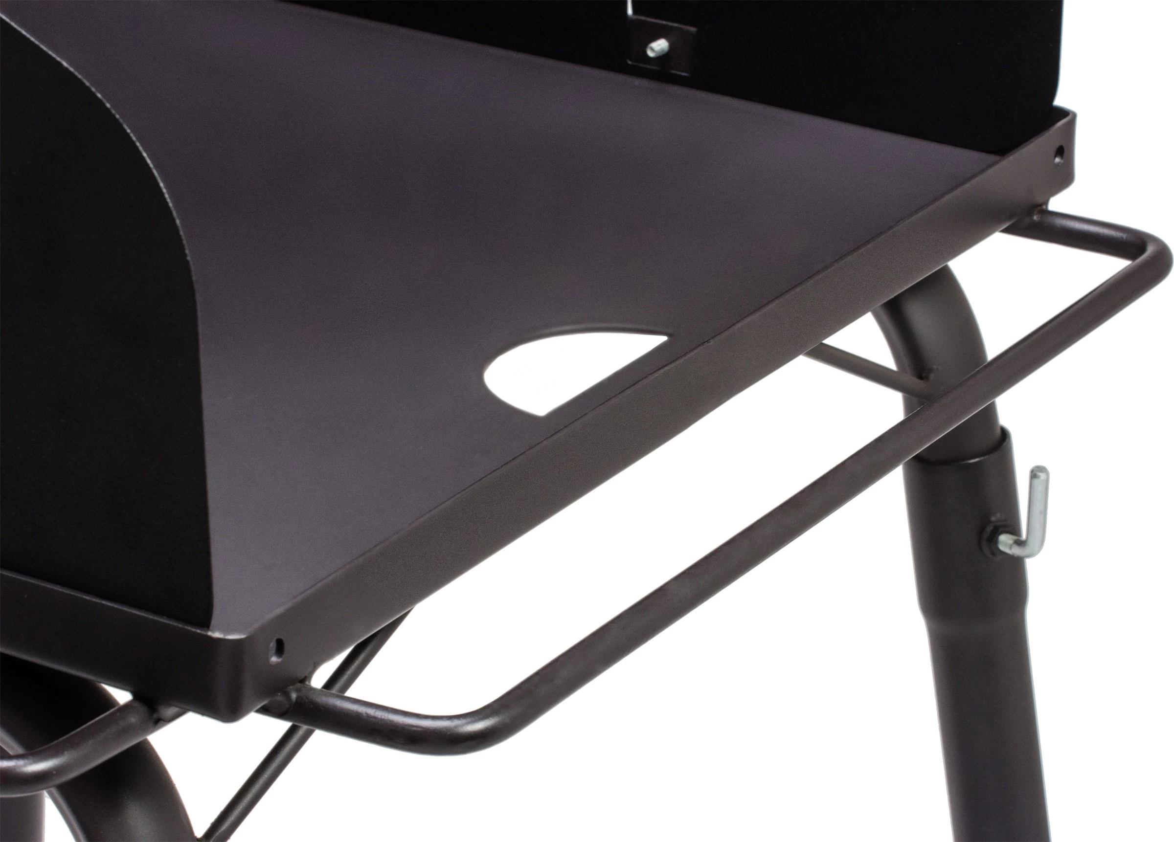 Arbejdshøjden er op til 87 cm, så du stående oprejst og uden en øm ryg til følge kan tilberede maden i dine ‘dutch ovens’, over en grillrist eller på din bålpande. Tilkøb evt. en Cooking Stand, hvis gryde eller pande skal løftes lidt op fra gløderne. Takket været de høje og brede vindskærme vil du spare energi og grillkul, selvom der kokkereres i det fri.