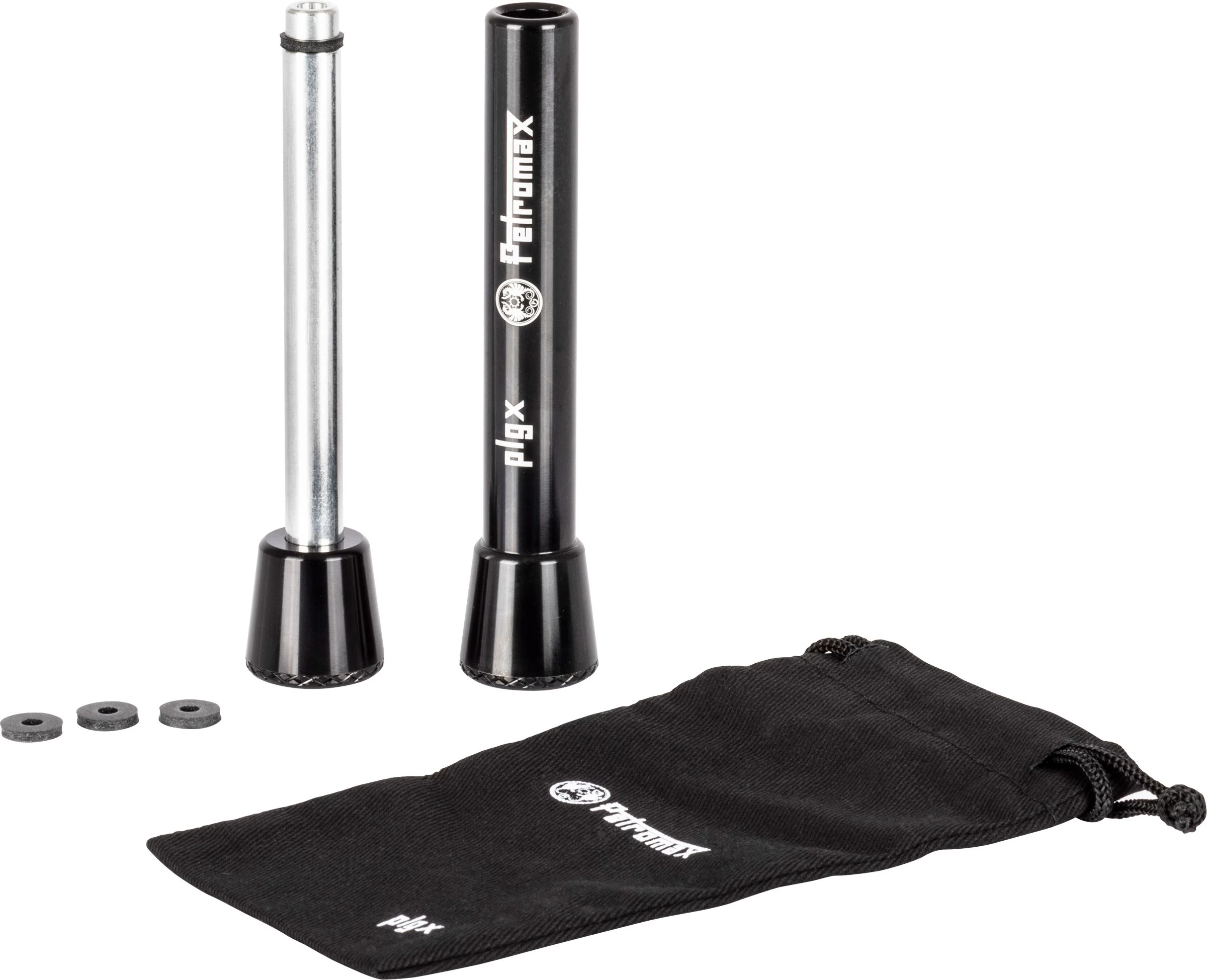 Den stilfulde og sortanodiserede Petromax Fire Plunger består af stempel og stempelkrop. Optændingsmateriale og smøremiddel til den problemfri antændelse kan du finde i de to beholdere i de respektive ender, hvor de ligger godt beskyttet under gevindhætter. Og når du skruer antændingsbeholderen ud af stemplet, kan du fjerne det ekstra ildstål.