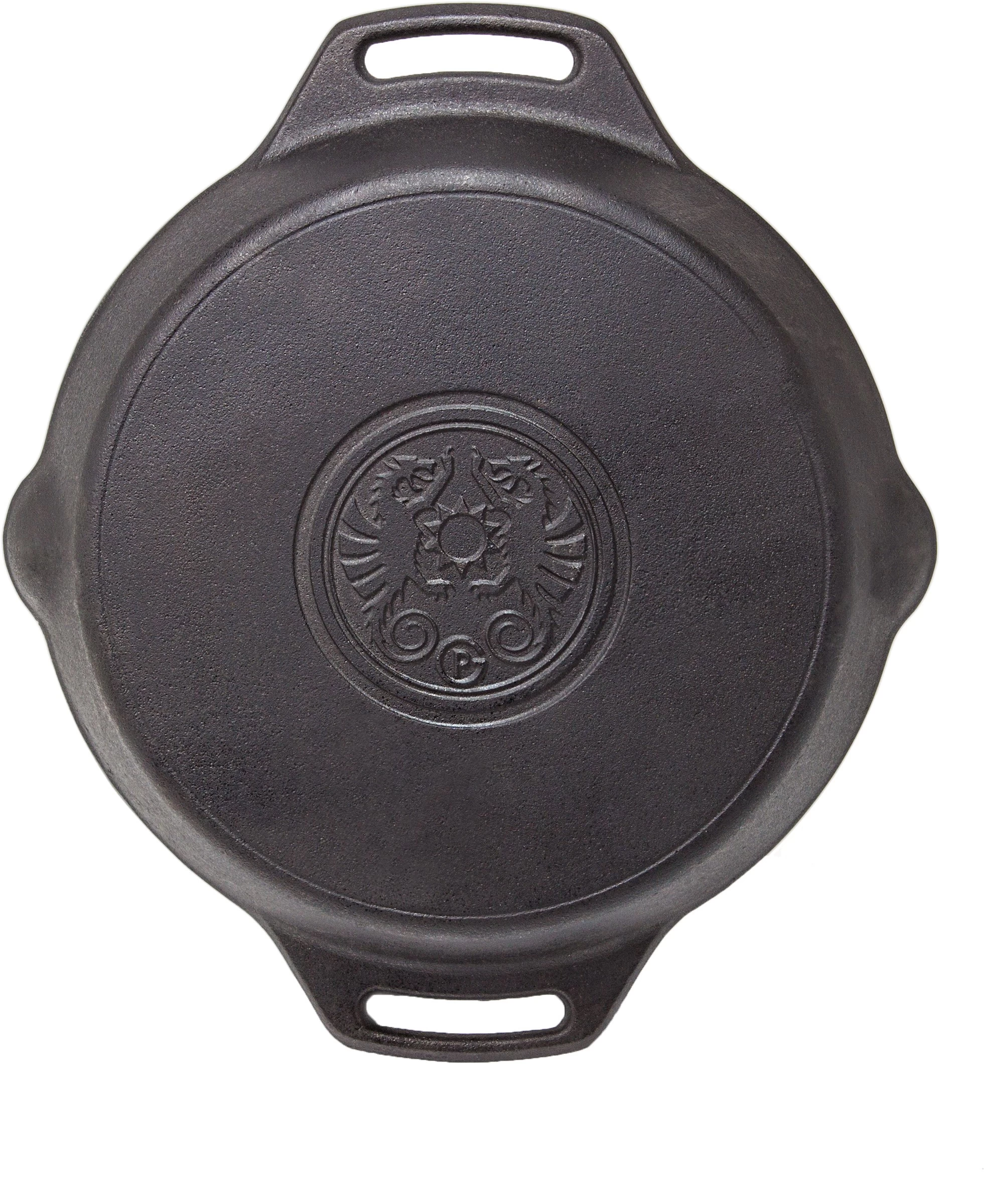 Denne rummelige Petromax Fire Skillet w/Two Handles FP35H er fremstillet af støbejern af ypperste kvalitet og er nærmest uundværlig, når måltiderne skal tilberedes over åben ild eller i køkkenet derhjemme. Professionelle kokke bruger også støbejernspander, for de er ekstremt holdbare og giver en formidabel varmespredning. Når du har prøvet dem, er du ikke i tvivl!