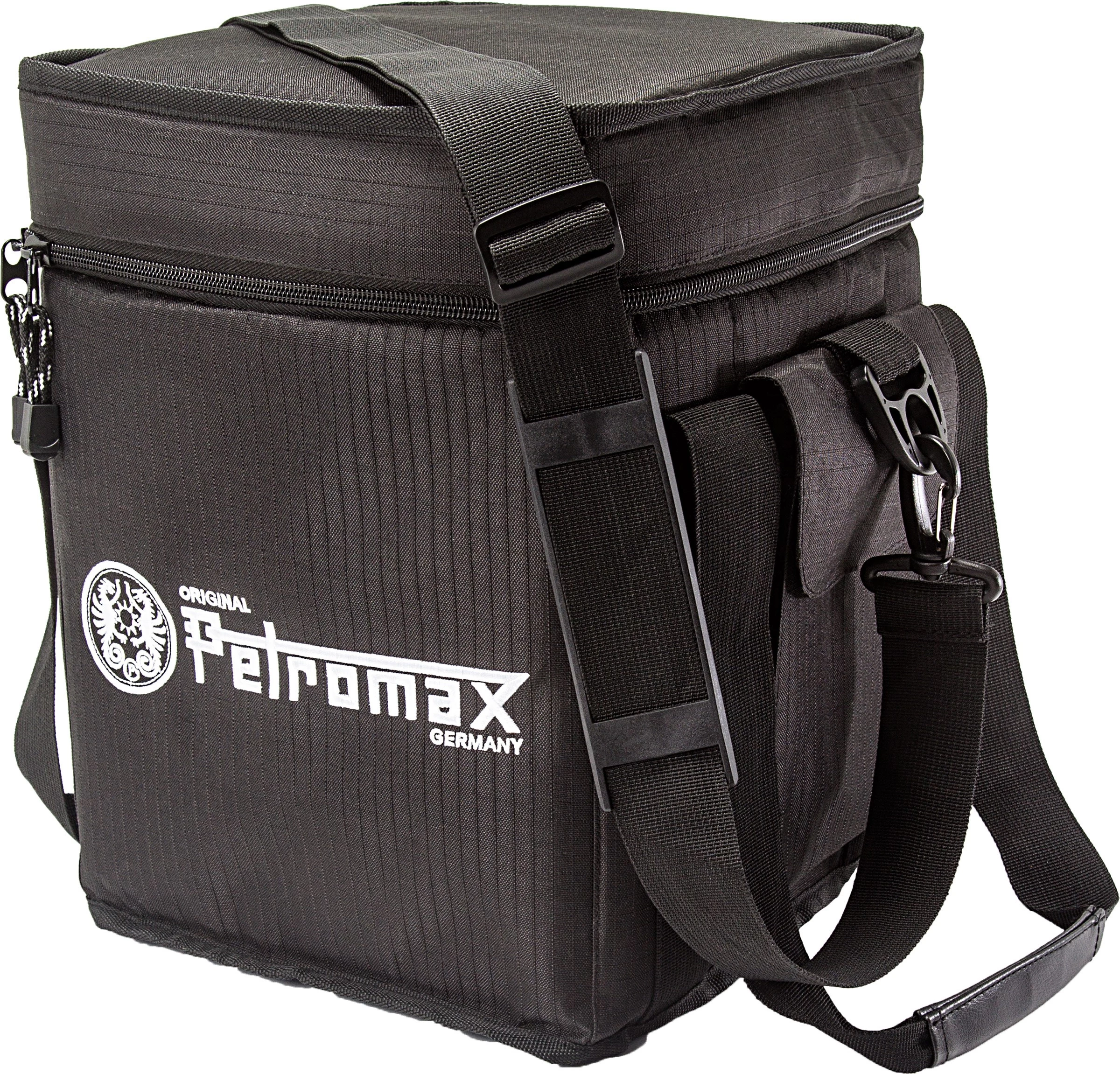 Det velpolstrede ripstop-materiale med det karakteristiske Petromax-logo bidrager til taskens stabilitet, og både de praktiske bærehåndtag og den aftagelige skulderrem, som giver god bærekomfort, er ekstra forstærket, så de holder til alle de krævende transporter.