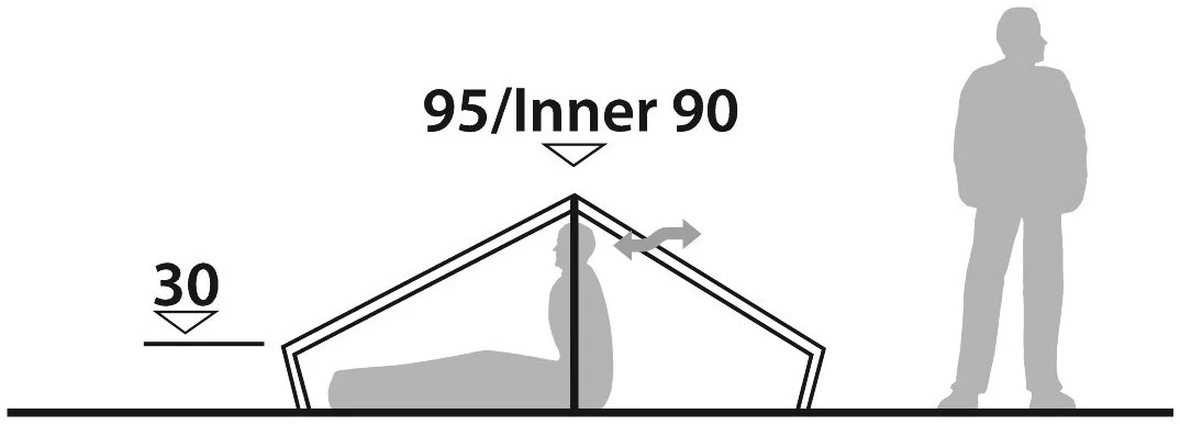 Teltet entreres gennem den store sideindgang med tovejs lynlås, hvor også den praktiske apsis til rygsæk, støvler og andet udstyr findes.