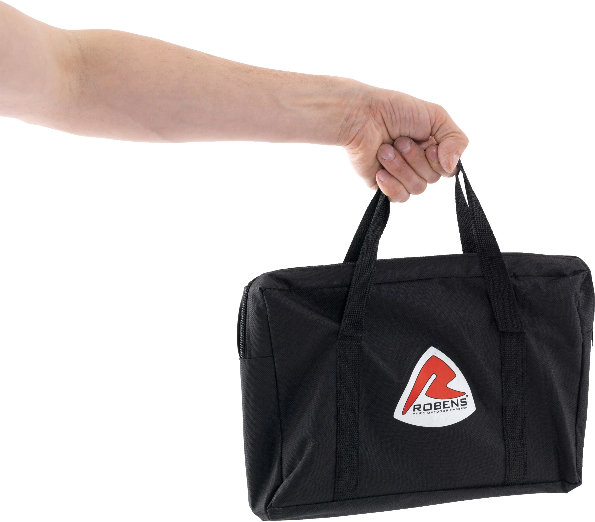 Og så leveres Robens Lassen Grill Trivet Combo S i en praktisk pakkepose med bærehåndtag, så den er nem at transportere, og så den ikke ligger og griser den øvrige oppakning til.