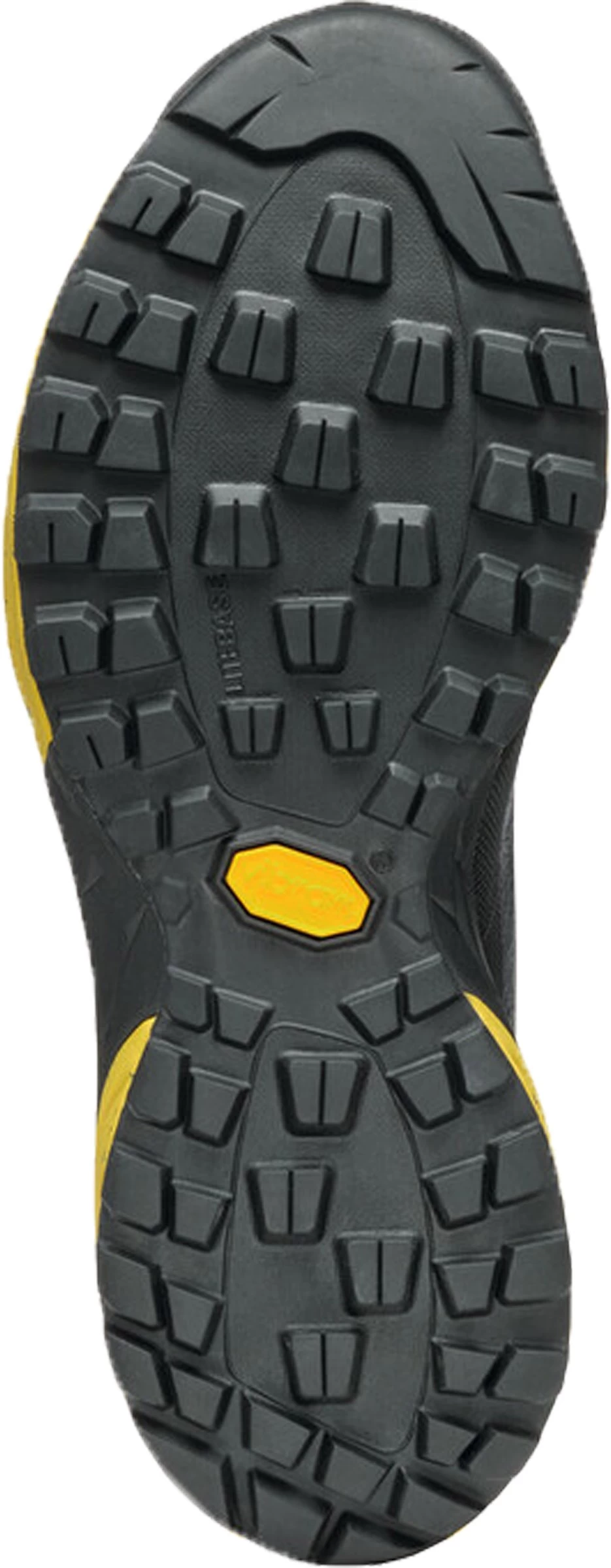 Ydersålen er den velprofilerede Vibram® MegaGrip™, der kombinerer klatresålens greb og outdoor-skoens slidstyrke og bid i forskellige typer underlag. Forrest er sålen relativ flad i profilen, hvilket giver bedre fæste, når der balanceres på de små kanter, og den øvrige del af sålen er den skåret med en mere aggressiv profil, der holder skoen fast på løse sten og blødt underlag, når turen går hjemad og man skal ned fra højderne sidst på dagen. En slidstærk gummiblanding med høj friktion, der på fornemste vis forener et rigtig godt greb med hverdagsskoens slidstyrke.
