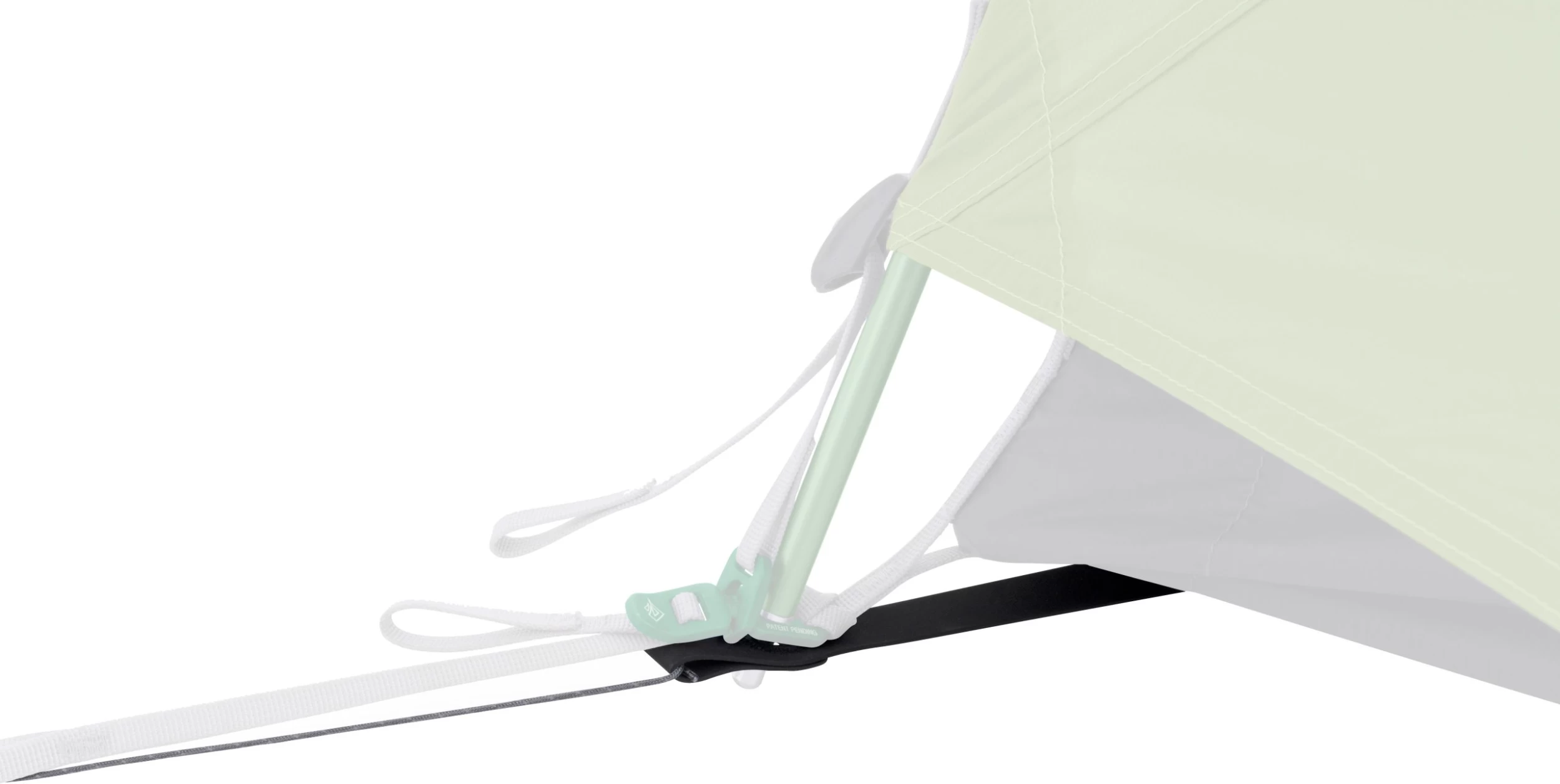 Underlaget, som nøje er udformet, så det ikke samler vand eller snavs, er fremstillet af en slidstærk 68 Denier nylon, som selvfølgelig er coatet for at øge vandtætheden (>1.200 mm) mod teltbunden. Underlaget kan i øvrigt også bruges alene sammen med teltstænger og oversejl til de helt lette ture, hvor der bare er brug for et helt let shelter.