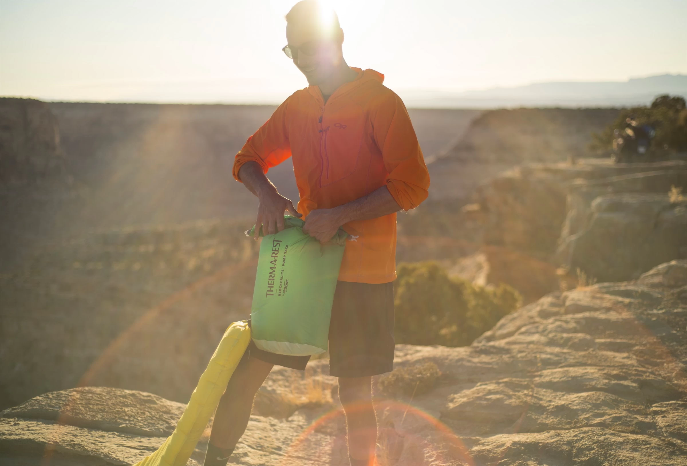 Therm-A-Rest® BlockerLite™ Pump Sack er nemlig en kombineret pumpe og 20 liters pakkepose, så du kan pakke soveposen eller andet udstyr i den vandtætte pose, og når soveposen eller andet er pakket ud, bruger du selvsamme pakkepose som pumpe til dit oppustelige liggeunderlag. Ganske fikst!
