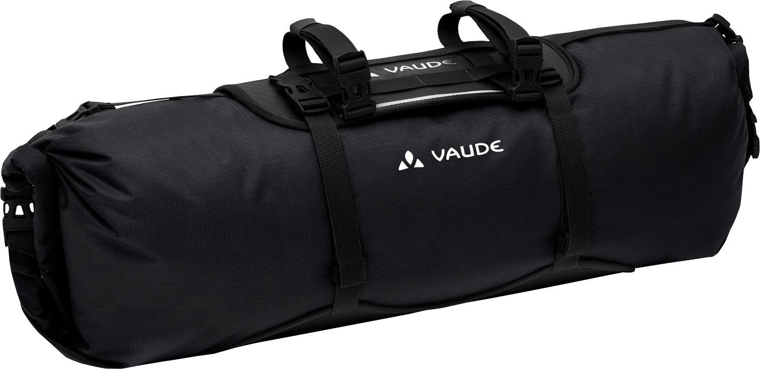 Denne Trailfront Bikebacking Bag, 19L fra Vaude er gennem rullelukningerne let tilgængelig fra begge sider og er et oplagt sted at pakke det lidt lettere udstyr som fx liggeunderlag og sovepose. En praktisk detalje er i øvrigt, at styrtasken leveres med en skulderrem, så den også kan bruges som skuldertaske, når den ikke lige sidder fastmonteret på styret.